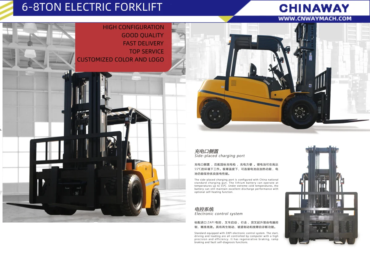 The Chinaway 1Ton to 10Ton electric forklift diesel forklift Machine is a testament to modern delivery truck, designed for a multitude of applications in the warehouse delivery and construction sectors. With its strong power and durable long time battery working, this battery forklift delivers reliable power, making it an ideal choice for warehouse delivery and tight spaces. The compact dimensions and small radius design make it easy to transport and maneuver, ensuring that it can be used in a variety of warehouse delivery, also the container loading situation. the off road forklift can work for the all terrain road working position. the powerful diesel engine forklift can offer a good performance working on all kinds pallets or goods lift and delivery.