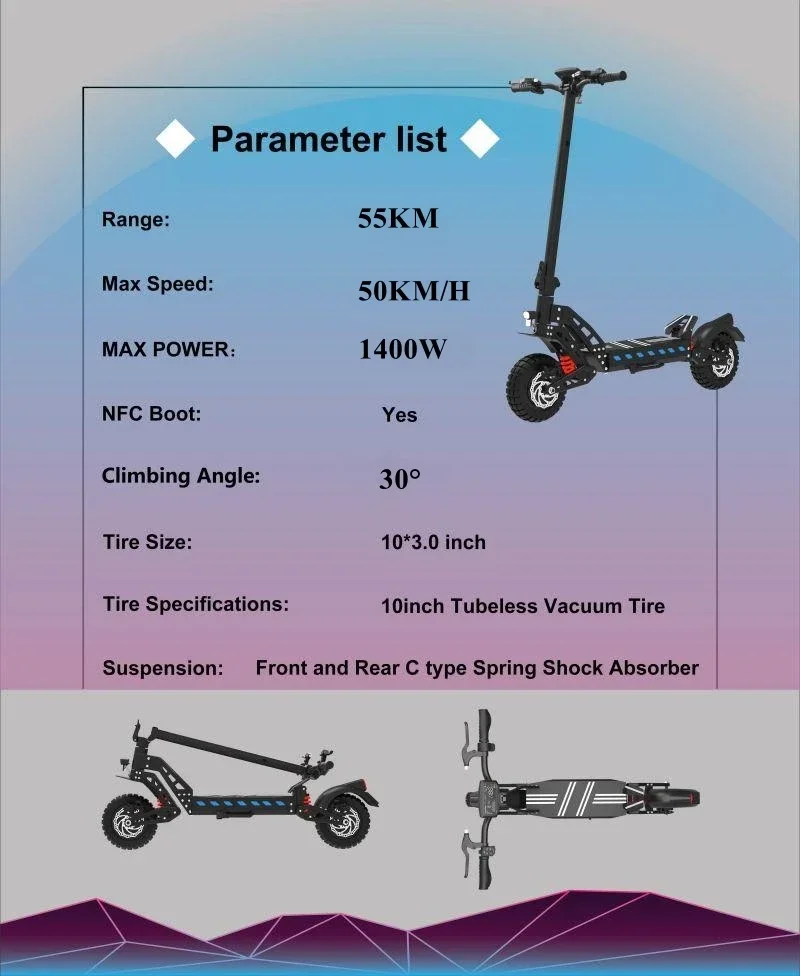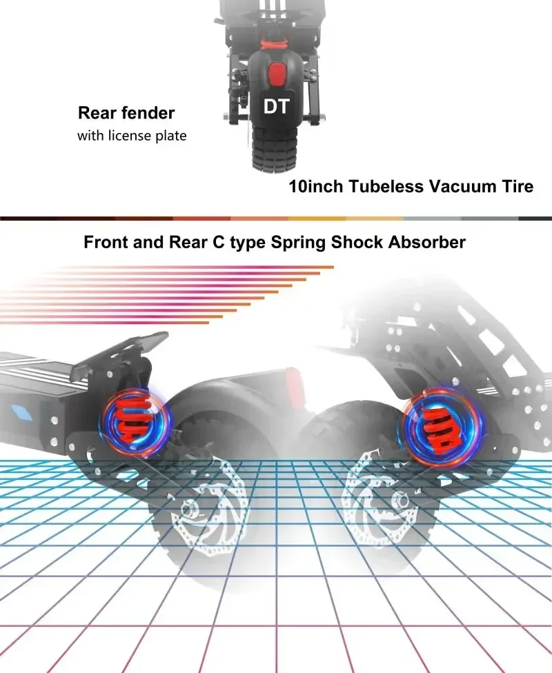 Drive Tron DT10 Adult Electric Scooter, 1400W*2 Motor,48V 20.8Ah Battery ,Folding E-Scooter,10 Inch Tire E-Mountain Scooter