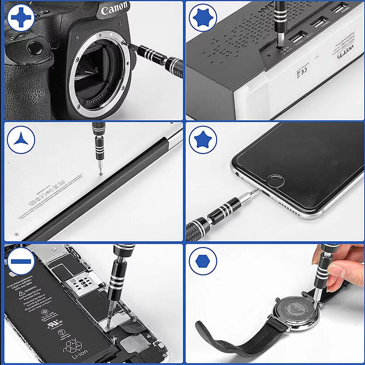 Multi-Magnetic Screwdriver Set : 125 in 1 Precision Screwdriver Set have more tools, comes with all the necessary tools for a wide variety of jobs. Perfect for repairing smart phone,laptops, tablet,mobile devices and other precision items like wrist watches and eyeglasses. Light weight and compact design
